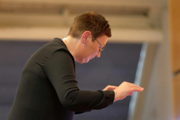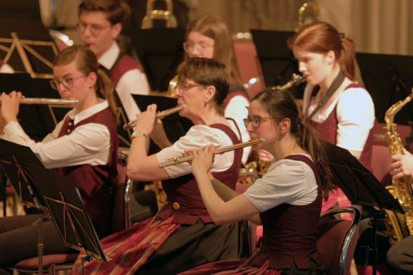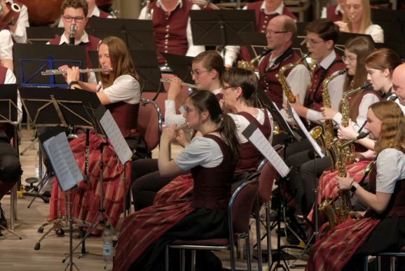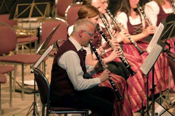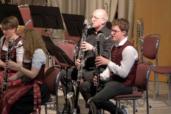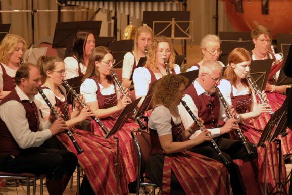 Mit der „Overture for Woodwinds“ – ebenfalls eine Auftragskomposition – von Philip Sparke eröffnete Petra Springer dieses Konzert außergewöhnlich: Das ausführende Ensemble bestand nur aus Holzbläsern! Was bereits ein Hinweis auf die erste Auftragskomposition von Georg Stankalla (Bad Schussenried) war, mit dessen „Wurzach 1525 für Klarinettenchor“ der Reigen der Uraufführungen eröffnet wurde.
