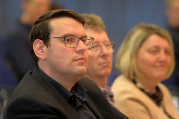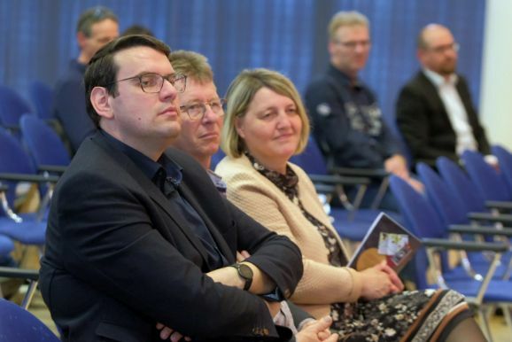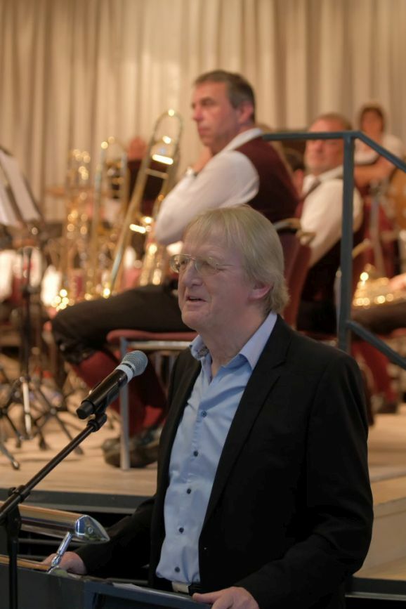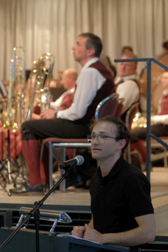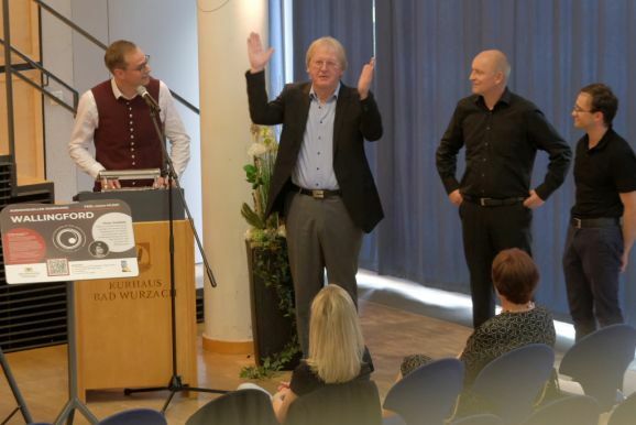 Victor Schätzle aus Berkheim würdigt mit seiner Komposition „Wallingford“ die Städtepartnerschaft mit der englischen Stadt. Zu Beginn erklingt die typisch englische Marschmusik, die dann in ein bekanntes Choral-Motiv, eine im katholisch geprägten Oberschwaben eine oft wiedergegebene Musikform ist, übergeht. Schätzle selbst sagte dazu: „Somit baut das Werk eine musikalische Brücke zwischen den Städten und soll all jene bestärken, die sich für Völkerverständigung einsetzen.“ Beinahe zwangsläufig kam er in seiner Vorstellung seines Stückes auch auf den Krieg in der Ukraine zu sprechen, sehr bewegend war auch sein Erinnerung an den Heiligabend des Jahres 1914, als für einen Tag in dem damals tobenden Ersten Weltkrieg die Waffen schwiegen.