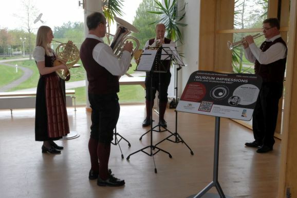 Mit dem Werk „Wurzun Impressions“ hat Dominic Wagner, der selbst nicht anwesend sein konnte aber mit einer Videobotschaft sein Werk erklärte, den drei wichtigsten Sehenswürdigkeiten bzw. Ereignissen Bad Wurzachs ein musikalisches Denkmal gesetzt. Deswegen wird den drei Sätzen auch jeweils an den entsprechenden Orten einer mit dem QR-Code versehenen Notenständer zugeordnet.
