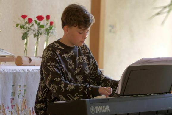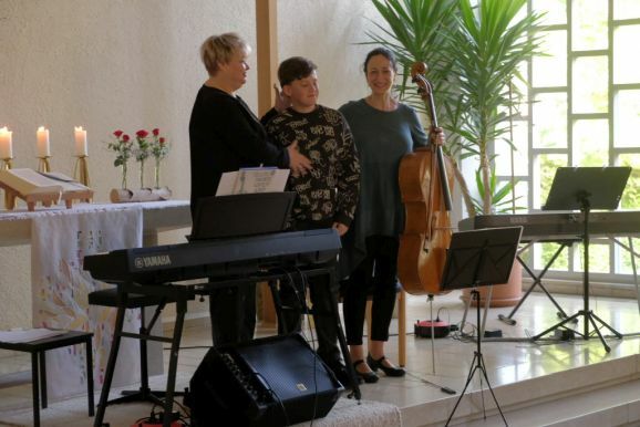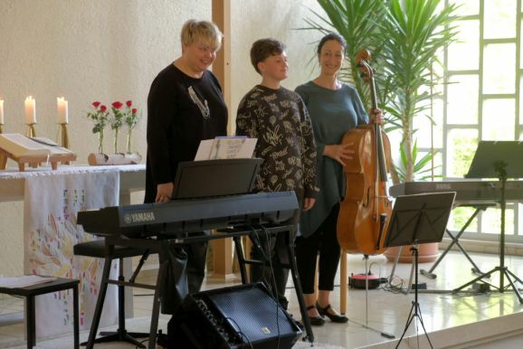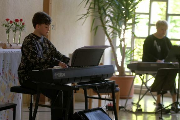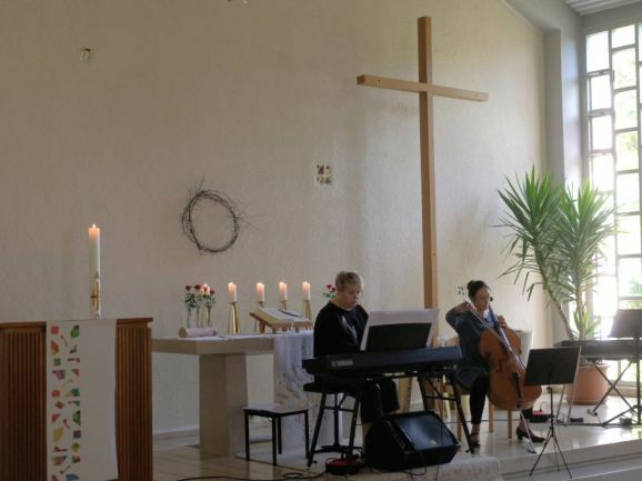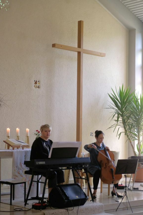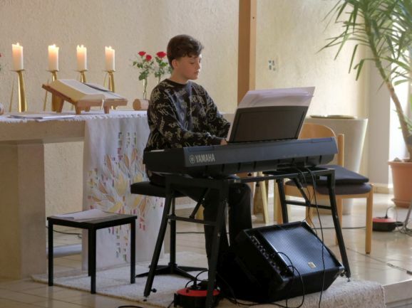 Just zu diesem Stück durfte der Special-Guest, Vadim Pitinov, der Neffe von Irina Esser die Bühne bzw. den Altarraum, in dem die beiden Musikerinnen spielten, betreten: Er war vor zwei Monaten gemeinsam mit seiner Mutter aus der Ostukraine geflohen. Zunächst als Solist und später gemeinsam mit Irina Esser bot er am E-Piano eine wunderbare Performance und wurde dafür mit langanhaltendem Applaus belohnt.