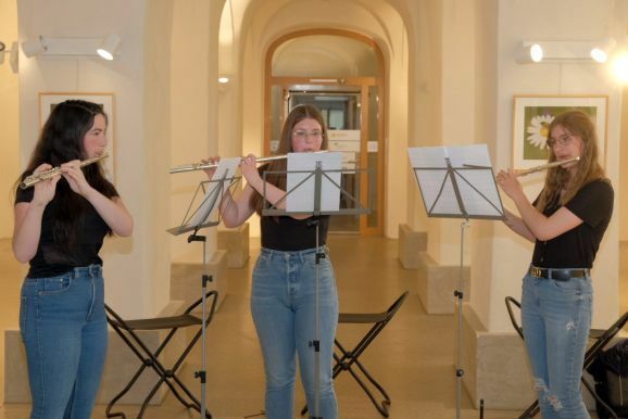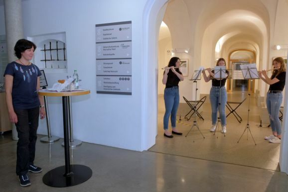 Ein Musikstück mit einem Querflötentrio der Jugendmusikschule unter Leitung von Bernadette Vogt leitete über zu der Einführung der Künstlerin in ihre Ausstellung.