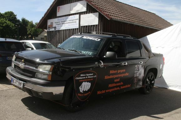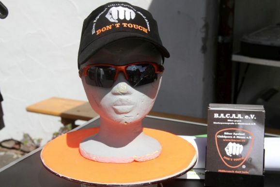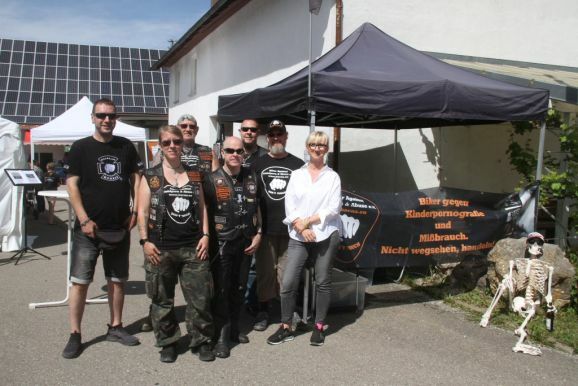 Auch wenn die Aufmachung des Merchandise-Standes und die Präsentation des Vereines vermuten lässt, dass die Jungs und Mädels von „B.A.C.A.A. e.V. – Biker against Childporn and Abuse“ e.V. zu den ganz harten Rockern in der Biker Szene gehören, ist doch tatsächlich das genaue Gegenteil der Fall, wie Damir Mahmutovic, der Chef des Teams Baden-Württemberg, das in Hauerz beim Bräuhaus Spenden für den guten Zweck sammelte, berichtet.