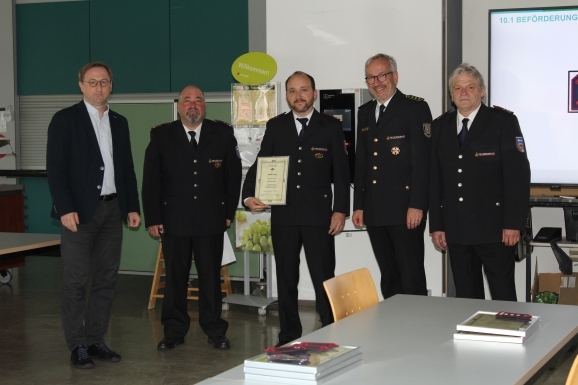 Es fanden Beförderungen bzw. Ernennungen zum Feuerwehrmann, Löschmeister, Brandmeister und Hauptbrandmeister statt. Außerdem erhielten vier Mitglieder der Feuerwehr eine Ehrung für 15 Dienstjahre, vier Mitglieder für 25 Dienstjahre und ein Mitglied für 40 Jahre Dienstzeit.