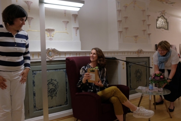 Die Besucher der Lesung hingen an ihren Lippen, man hätte den berühmten Stecknadelknopf fallen hören können, wäre nicht hin und wieder durch die geöffneten Fenster der Bücherei das Glockengeläut der St. Verenakirche in den Kapitelsaal gedrungen.