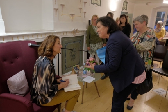 Nach der Begrüßung durch die Leiterin der Stadtbücherei, Christine Linge die sich sehr freute, endlich wieder eine hochkarätige Veranstaltung im wunderschönen Lesesaal der Bücherei durchführen zu können, sowie einigen einführenden Worten durch Sabrina Rintisch als Vertreterin der Organisation des Literaturfestivals, machte sich die Autorin Anja Jonuleit gemeinsam mit den rund 40 Besuchern auf die Spurensuche in diesem mysteriösen Kriminalfall.