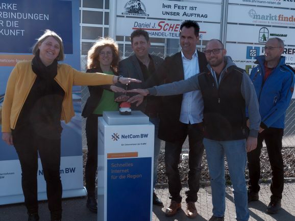 Bad Wurzach - Mit einem symbolischen Druck auf den roten Buzzer nahmen Verantwortliche der ausführenden Firmen, des Zweckverbandes Breitbandausbau Landkreis Ravensburg, des Betreibers NetCom BW und der Stadtverwaltung die erste Glasfaserverbindung in der Großgemeinde in Betrieb.