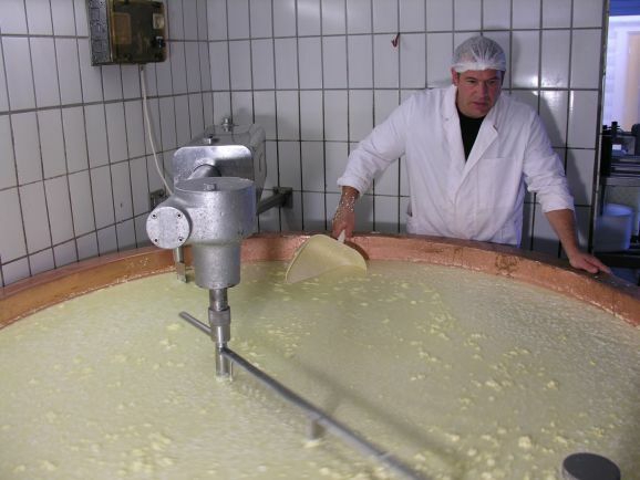 Gospoldshofen - Bei der Käserei Vogler in Gospoldshofen kommt die Milch für die verschiedenen Käsespezialitäten von den Kühen aus der Region. Die Schaukäserei Vogler ist eine der letzten Käsereien im Allgäu, die aus naturbelassener Rohmilch, frei von jeglichen Zusätzen, Käse in traditionellem Handwerksverfahren herstellt.