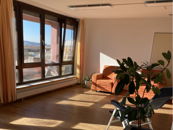 Bad Wurzach - Teilstationäre Patientinnen und Patienten der Rehaklinik Bad Wurzach können sich zwischen ihren Behandlungen ab sofort in einen sonnigen, gemütlichen Ruheraum, der zum Verweilen einlädt, zurückziehen.