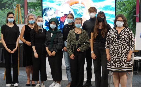 Bad Wurzach - Schweigend betreten sechs schwarz gekleidete Schülerinnen und ein Schüler aus unterschiedlichen Richtungen die Bühne. Sie tragen weiße Kugeln mit Schleiern in Händen, setzen sie auf einer hellen Stoffbahn in der Mitte des Schauplatzes ab. Die weiße Fläche wandelt sich zum bewegten Meer, das am Ende von den Schauspielern hinausgetragen wird. Übrig bleiben: ein Haufen Trümmer, Abfall und Strandgut.