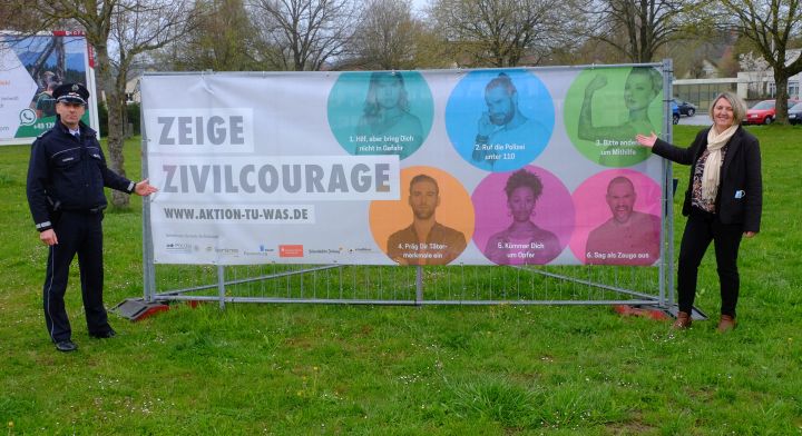 Bad Wurzach - Seit dieser Woche stehen an den beiden großen Einfallstraßen, an der Ravensburger und der Leutkircher Straße große Transparente, mit denen die Polizei für mehr Zivilcourage wirbt und Tipps gibt wie diese aussehen kann.