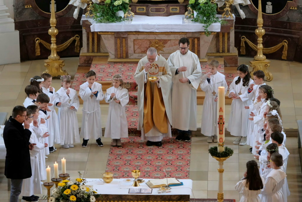 Bad Wurzach - Neun Mädchen und vierzehn Jungen empfingen bei einem Festgottesdienst, der unter dem Leitwort „Weites Herz – offene Augen!“ stand, am Weissen Sonntag in St. Verena erstmals die heilige Kommunion.