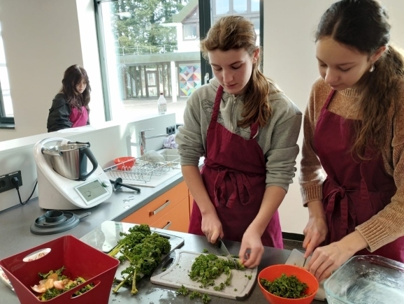 AES-Lehrerin Eva Souard zieht ein erstes Fazit: „Wir freuen uns riesig über die neuen Geräte und sie werden auch schon fleißig von den Schülerinnen und Schülern genutzt. Selbstverständlich lernen die Schüler und Schülerinnen bei uns trotzdem noch die Grundlagen des Kochens. Die Küchengeräte aber sind ein guter Begleiter in der Küche. Gerade beim Anrühren von Teigen oder in der Herstellung von Suppen, Chutneys etc. bieten sich die Geräte hervorragend an. Auch wenn es mal etwas schneller in der Küche gehen muss, ist schnell etwas gezaubert.“