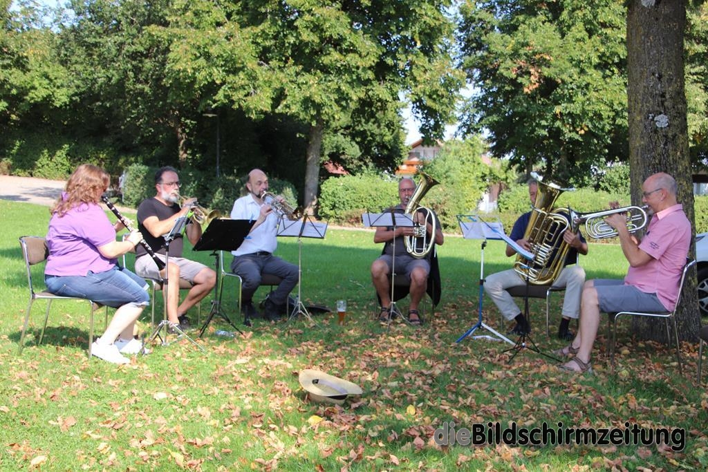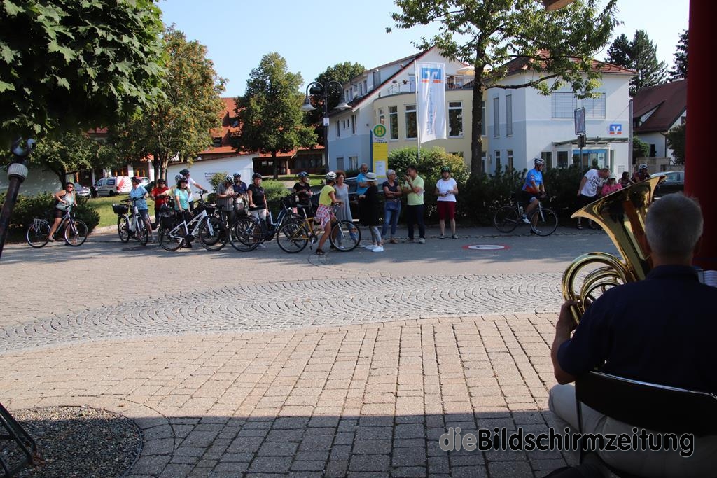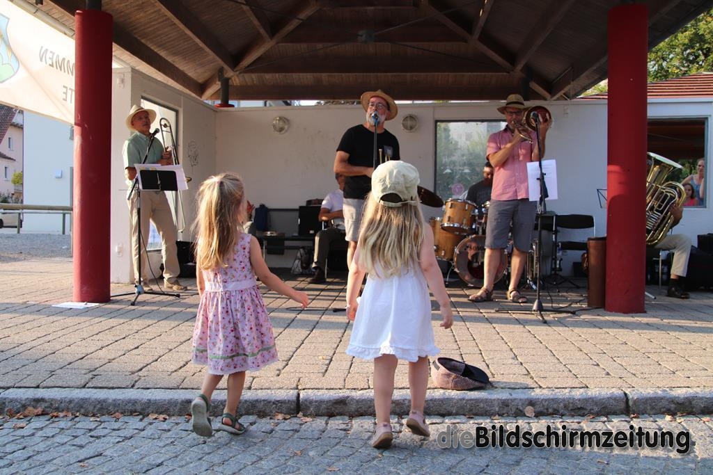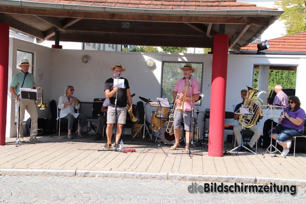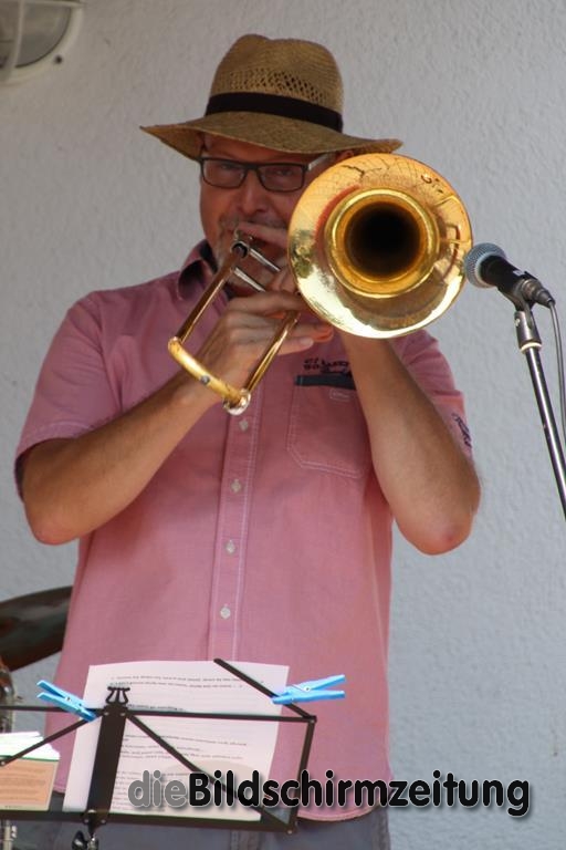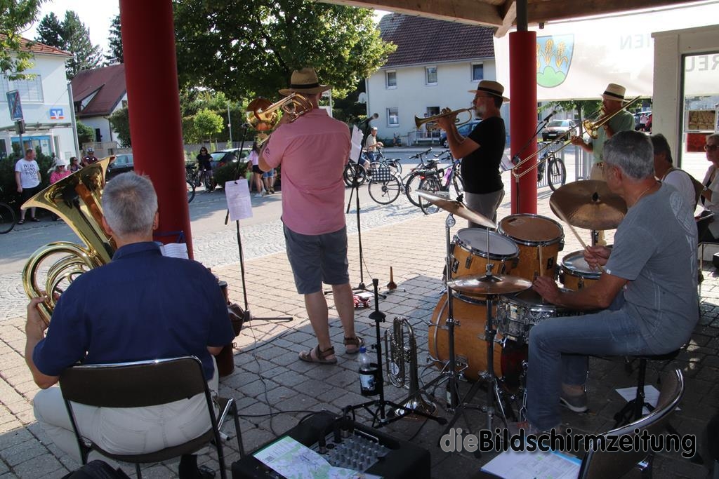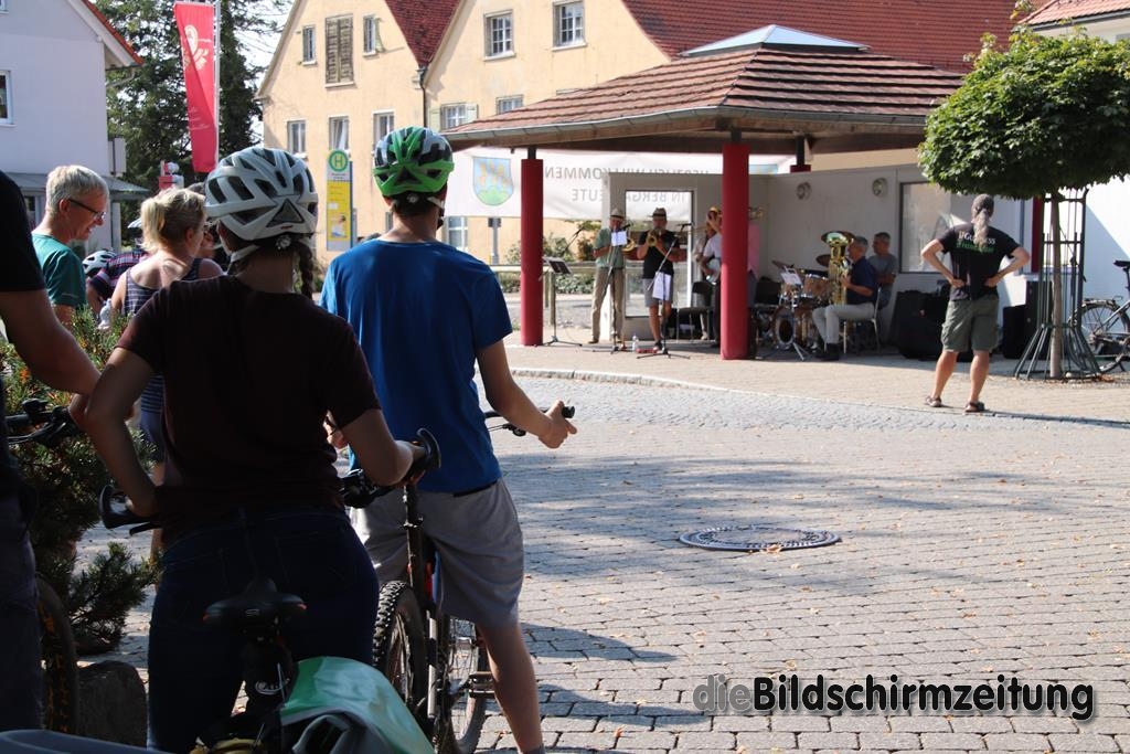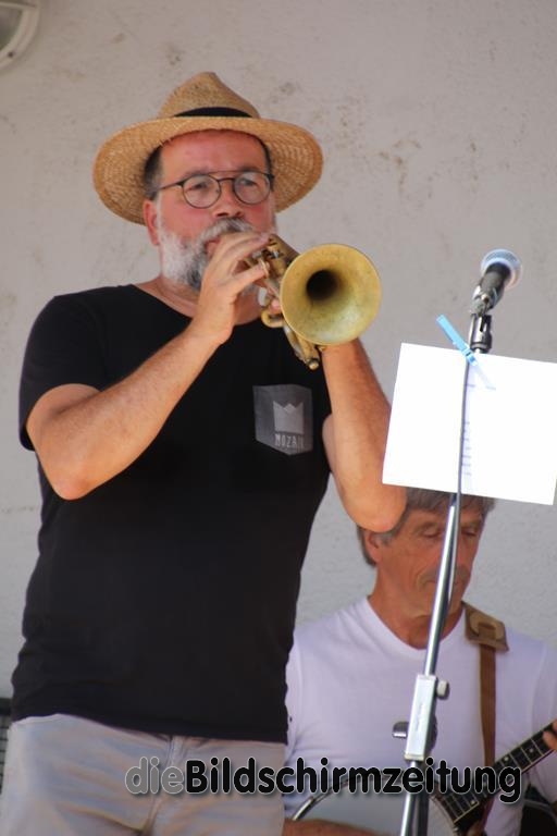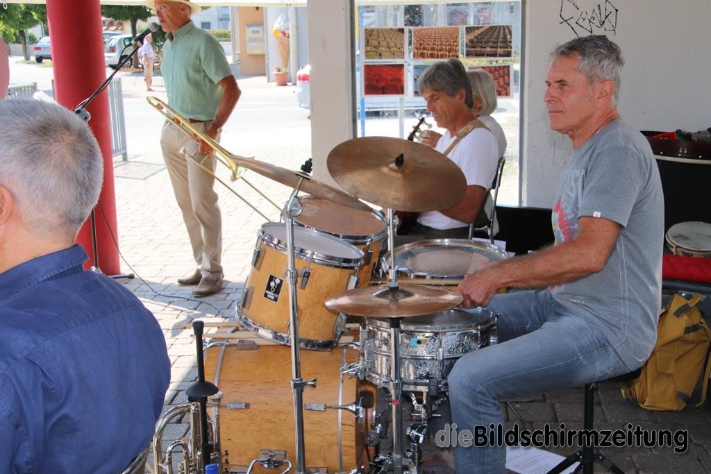 Am Sonntag trat diesmal die Lumpenkapelle aus Bergatreute unter Leitung von Raimon Dörr auf, die sich mit einigen hochkarätigen Interpreten verstärkt hatte. Bekannt ist die Gruppe durch ihre Auftritte bei der Bergatreuter Fasnet. Mitreißende Dixie- und Swing-Melodien ließen die vorbeikommenden Radfahrer heftig applaudieren. Das war aber nicht alles. Auch volkstümliche Walzer, Polkas und Märsche hatte die Gruppe drauf.