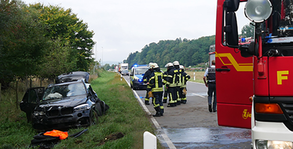 Bergatreute / Baindt (dbsz) - Am heutigen Samstag, 20. 8., kam es gegen 9.21 Uhr auf der L314 zwischen Baindt und Bergatreute (kurz nach Kia-Händler Ebner, Baindt) zu einem folgenschweren Verkehrsunfall.
