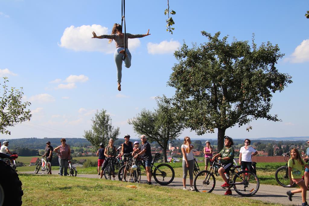 Aulendorf – „Umanand aufm Land“, das zweite Jahr Kultur im Parcour: In Aulendorf machten die Radler Rast und Station bei Dinnete und Musik im IrReal.