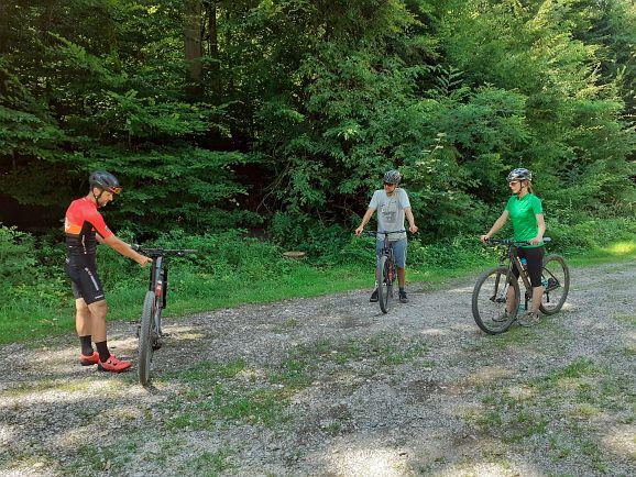 Nicht etwa zum Baden an einem heißen Tag, sondern zu einem Fahrtechniktraining auf einem Platz nebenan. Dort hieß es, falsche und gute Haltung auf dem Rad zu unterscheiden, Hütchen zu umfahren, die Bremsen zu dosieren oder aber voll abzubremsen, also insgesamt die Beherrschung des Rades zu verbessern, um so in schwierigen Situationen unterwegs besser gewappnet zu sein.
