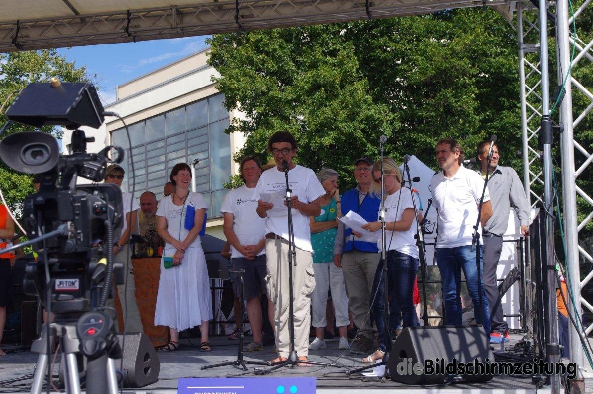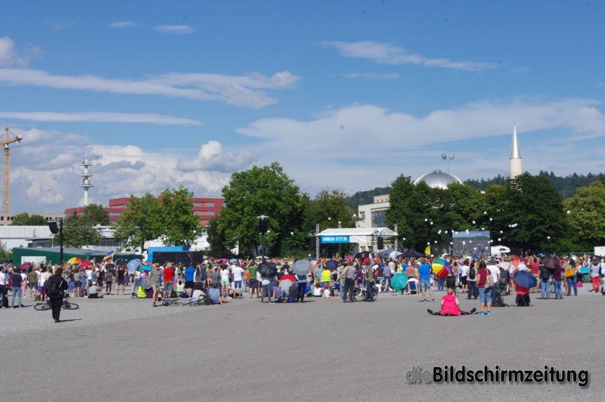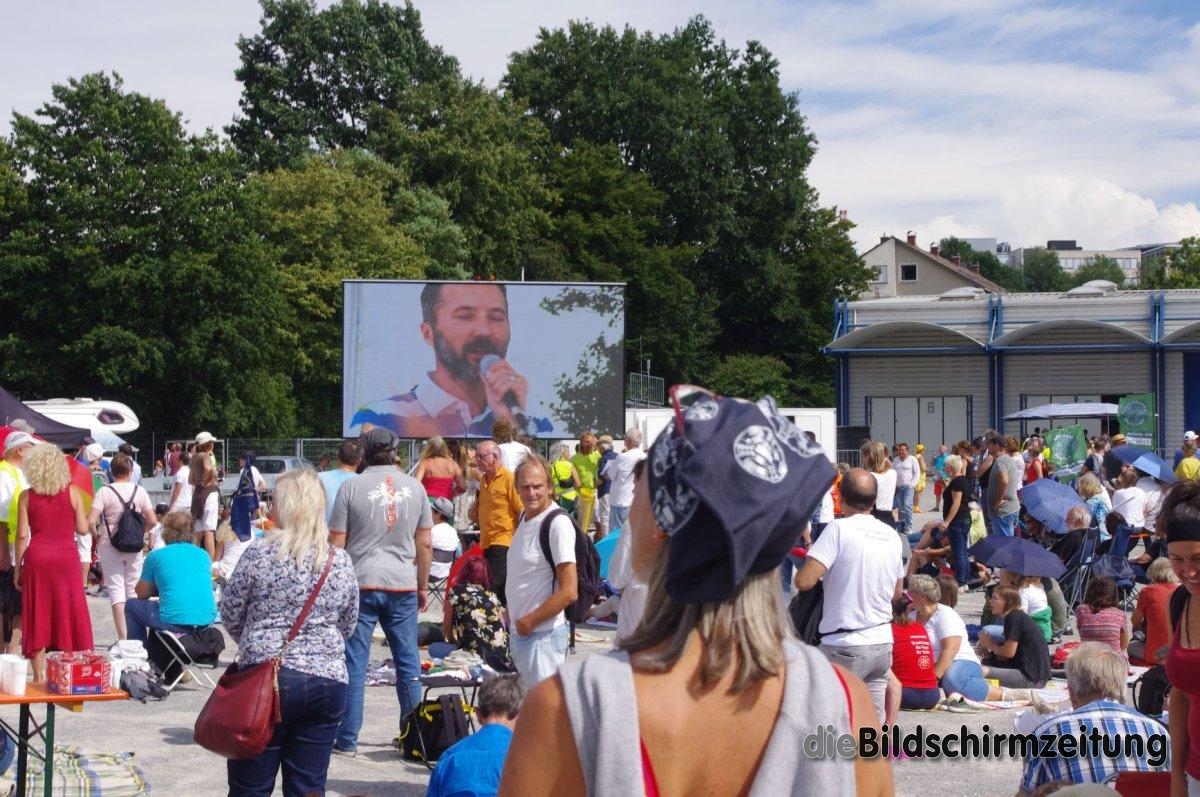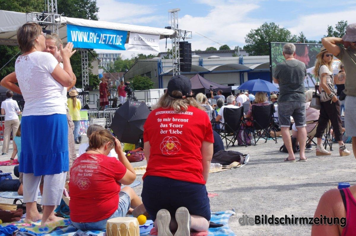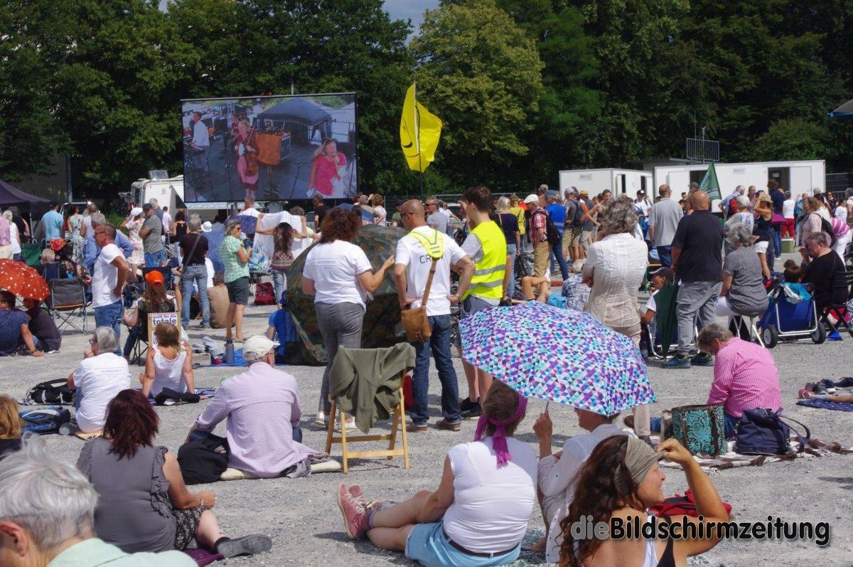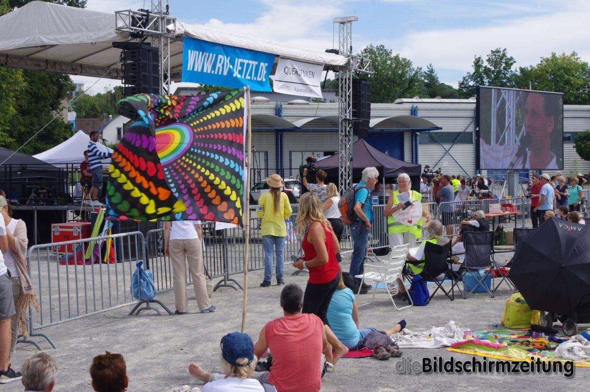 Viel Ravensburger empörten sich allerdings nicht, denn es waren auch nicht viele Ravensburger da, angesichts der Aufzählung von der Veranstalterin Doreen Schneider, die die Zuhörer beginnend mit Augsburg, Biberach, Hegau, Illertissen, Konstanz, Leutkirch, Offenburg, München und Wangen begrüßte. Bei etwa 1000 Teilnehmern blieben in dieser Rechnung wohl die Ravensburger fern oder des Wartens müde, hatte sich das Programm doch schon über Stunden hingezogen und nichts war passiert, außer ein wenig tanzen und singen.