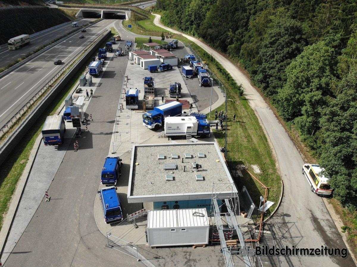 Ulm - Aufgrund der Ferienzeit und den damit verbundenen Reise Rückkehrern beauftragte das Ministerium für Soziales und Integration das Technische Hilfswerk (THW) mit dem Aufbau einer Corona Teststation auf dem Parkplatz Kemmental - Ost an der A8 bei Ulm. Unter anderem waren auch die THW Ortsverbände Biberach, Wangen und Weingarten im Einsatz.