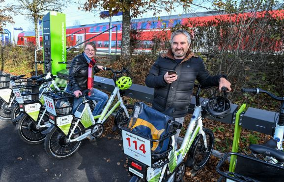 Ravensburg/Weingarten - Nächster Anschluss Elektrorad – das ermöglicht die neue Verleihstation der Technische Werke Schussental GmbH & Co. KG (TWS) am Bahnhaltepunkt Weingarten. „Das ist eine tolle Ergänzung für all diejenigen, die den Schienenverkehr nutzen. Jetzt kommen sie noch flexibler und dazu umweltfreundlich ans Ziel“, freut sich Bernd Hasenfratz, Prokurist der Bodensee-Oberschwaben-Verkehrsverbund GmbH (bodo).