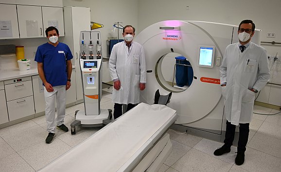 Prof. Dr. med. Martin Heuschmid, Chefarzt der Klinik für Radiologie, erklärt dazu: „Durch den neuen Computertomographen können Körperregionen in Sekunden mit dünnen Schichten unter einem Millimeter aufgenommen und dreidimensional betrachtet werden. Ein Beispiel hierfür ist das Herz-CT mit geringer Strahlendosis. Dadurch können unter anderem die Herzkranzgefäße exakt anatomisch dargestellt werden und mögliche Gefäßerkrankungen erkannt werden.“