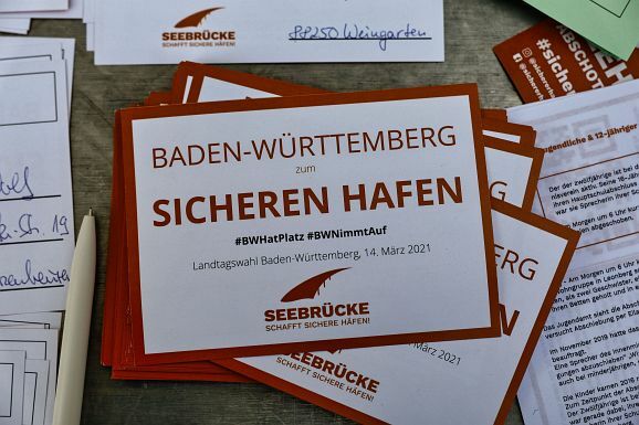 Im Rahmen der Kampagne wurde bereits am Tag der Menschenrechte im vergangenen Dezember ein Brief im Staatsministerium übergeben, der von 168 Organisationen unterschrieben wurde, die sich hinter die Ziele der Kampagne gestellt haben. „Es gibt eine Zivilgesellschaft, die sich offen zeigt für eine zusätzliche Aufnahme von geflüchteten Menschen im Rahmen eines Landesaufnahmeprogrammes und die für menschenfreundliche und solidarische Entscheidungen steht. Dieses zivilgesellschaftliche Engagement sollte offene Ohren finden“, forderte Ines Fischer von den Seebrücken Baden-Württemberg.