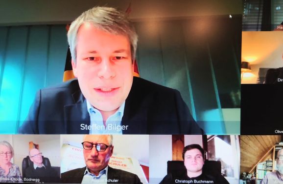 Auf Einladung des Landtagsabgeordneten August Schuler war Bilger Gast in einer Online-Konferenz zur „Zukunft Baden-Württemberg“. „Eine gute Verkehrsinfrastruktur auf Straße und Schiene ist lebenswichtig für unseren Wirtschaftsstandort, auch in Oberschwaben. Wir sind das Automobilland mit hunderttausenden Arbeitsplätzen und bekennen uns dazu“, so Schuler in seinem Eingangsstatement.