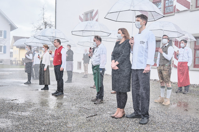 Landkreis Ravensburg - Unter dem Motto „Lasst uns nicht im Regen stehen!“ haben die Kreisräte der DEHOGA Kreisstelle Ravensburg am vergangenen Montag in Amtzell vor dem Alten Schloss ein Zeichen gesetzt. Die Gastronomen und Hoteliers möchten damit auf Ihre prekäre Situation aufmerksam machen. Die Gastronomen und Hoteliers fühlen sich, in großen Teilen, von der Politik alleine gelassen und eben im Regen stehen gelassen!