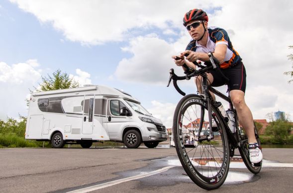 Ähnlich groß wie der Trainingsumfang ist auch der organisatorische Aufwand, mit dem ein solcher Weltrekordversuch, insbesondere in Pandemie-Zeiten, verbunden ist. Umso wichtiger wird da das zweiköpfige Team, das Leonhardt bei seiner Tour begleitet. Auch der Carado T338, den der Reisemobilhersteller Leonhardt zur Verfügung stellt, wird zum entscheidenden Puzzleteil beim Weltrekordversuch. Mit jeweils vier Sitz- und Schlafplätzen bietet das Wohnmobil Leonhardt und seinem Team unterwegs ausreichend Platz. Außerdem beinhaltet es eine funktionale Küche, ein Bad mit Dusche und genügend Stauraum für Verpflegung und Equipment. Eine großzügige Heckgarage bietet genug Platz für Reparaturteile. Insgesamt bietet das Wohnmobil von Carado Leonhardt auf seiner Rekordjagd einen komfortablen Ort zum Schlafen und Regenerieren, das ihn nicht nur von Hotels unabhängig macht.