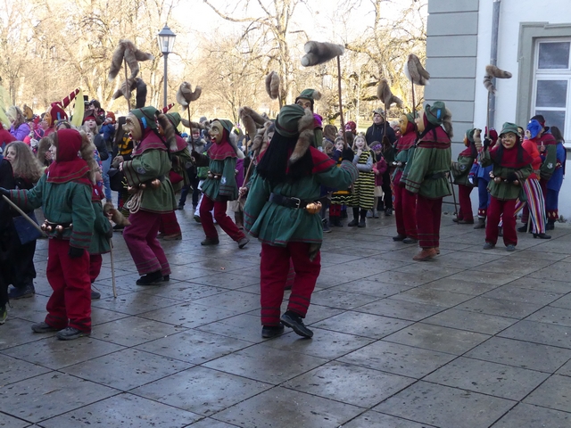 Zwischenzeitlich machten sich die ersten Gruppen bereits auf, für den Zug durch die Gemeinde. Der närrische Tag wird in Kisslegg lang und läutete die Hochfasnet ein.