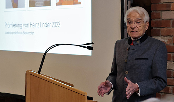 Wolfegg - Die Fördergemeinschaft des Bauernhausmuseums Wolfegg hat am 30. März in der Zehntscheuer aus Gessenried Heinz Linder, den früheren Ortsheimatpfleger von Kißlegg, für sein Lebenswerk geehrt. Prof. Dr. Manfred Thierer, einer der führenden Heimatpfleger des württembergischen Allgäus und Autor grundlegender Werke zur Regionalkultur („Stätten der Stille“, „Beseeltes Land“), hielt einen Vortrag.