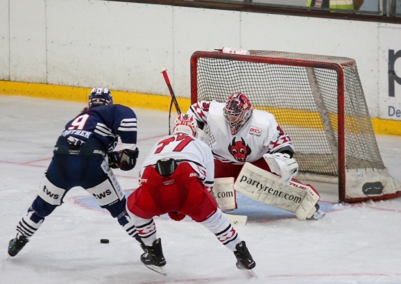 Pallastrone war es auch, der zweieinhalb Minuten vor der ersten Pause das 2:0 folgen ließ. Ein Puckverlust der Towerstars beim Aufbau in der eigenen Zone drehten die Roten Teufel schnell in einen Angriff um. Zuvor gab es ein paar vielversprechende Szenen in der Towerstars Offensive, vor dem gegnerischen Tor fehlte jedoch die allerletzte Konsequenz.