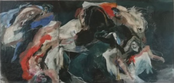In Kißlegg ist den Figurenbildern Herwig Schuberts der große Ausstellungsraum gewidmet. Blickfang ist dort das monumentale Querformat seiner „Reiterschlacht“ von 1967. Obwohl es in diesem Gemälde durchaus noch Anklänge an klassische, etwa barocke, Darstellungen solcher Themen gibt, wird hier bereits ein Grundzug von Schuberts Malerei deutlich: Es geht dem Künstler mehr um das Wie als um das Was. Die Schlacht wird hier vorrangig mit dem Pinsel, also mit malerischen Mitteln, geschlagen.