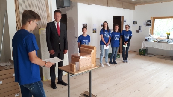 Am 23. September konnten die Mitglieder der Energie-AG Landrat Harald Sievers zusammen mit Bürgermeister Rainer Magenreuter und Mitarbeiter*innen der Stadt Isny sowie des Landkreises Ravensburg bei sich begrüßen. Die Mitglieder der Energie-AG hatten die Möglichkeit das Haus in jeder Facette vorzustellen und einzelne Besonderheiten zu zeigen. Die persönlichen Erfahrungen der Jugendlichen zeigten außerdem, wie viel Eigeninitiative und Arbeit in diesem Projekt stecken. Besonders ein vorgestelltes Detail diente als Beispiel: In naher Zukunft soll das Haus durch Sensoren ergänzt werden, die sowohl Wärme und Lautstärke als auch andere Bereiche messen können. Wie auch der Rest des Hauses, sind die Sensoren ein Schülerprojekt. Einst für den Unterricht gedacht, finden sie im EnergieHaus eine moderne und praktische Anwendung.