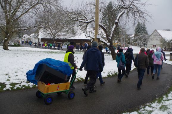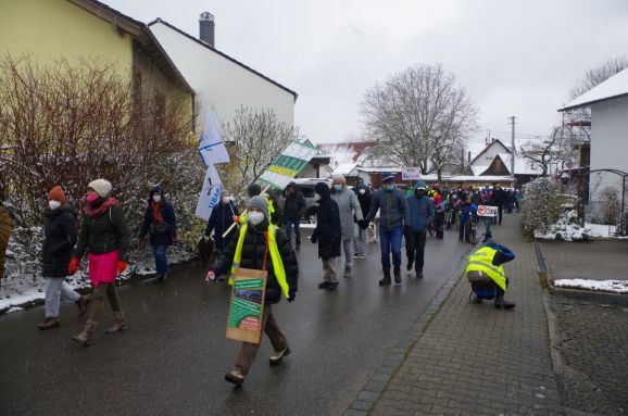 Unterankenreute/Oberankenreute – Beim Treffpunkt am Dorfgeminschaftshaus in Unterankenreute haben sich am Samstagnachmittag trotz Schneegestöber 170 Bürger*innen zu einer der ersten Demonstrationen durch Unter-und Oberankenreute versammelt.