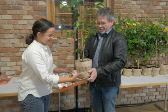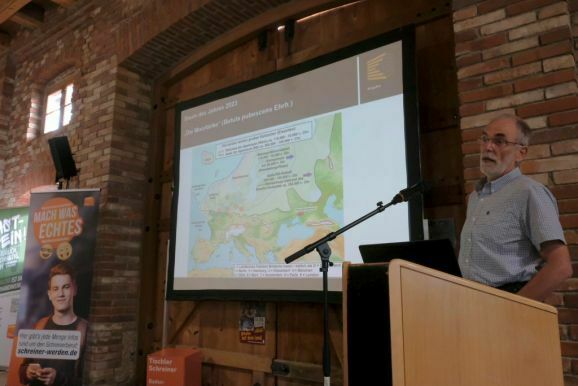 Um die Lossprechungsfeier nicht ganz so trocken zu gestalten, hielt Eugen Dyckerhoff noch einen Fachvortrag über den Baum des Jahres, über die Moorbirke, von der jeder Geselle ein Exemplar als Geschenk der Innung ausgehändigt bekam.