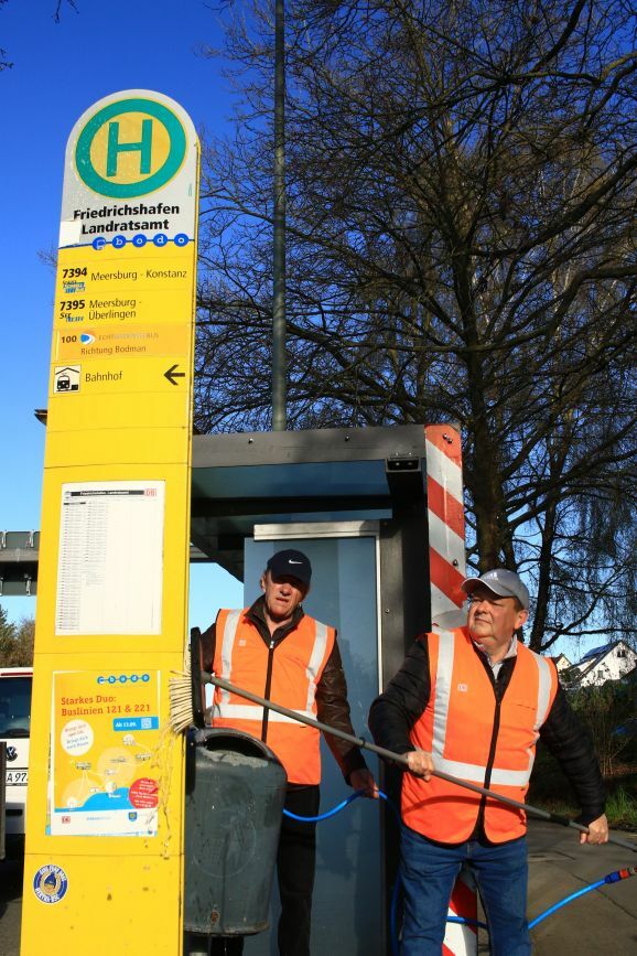 Region – Ein mobiler Einsatztrupp der Regionalverkehr Alb-Bodensee GmbH (RAB) reinigt derzeit die Haltestellenschilder an den Bushaltestellen der Hauptverkehrsachsen im Bodenseekreis. Anschließend sind die Regiobus-Linien 500 (Überlingen – Sigmaringen) und 700 (Konstanz – Ravensburg) sowie weitere Linien an der Reihe.