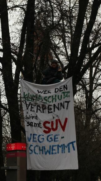 Ravensburg - Am heutigen Samstag (22.01.2022) besetzen rund ein Dutzent Klimaaktivist*innen erneut Bäume in der Ravensburger Innenstadt. Hierbei befinden sich die Personen auf je einem Baum.