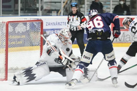 Ravensburg - Eine regelrechte emotionale Achterbahn erlebten die Towerstars und ihre Fans beim Topspiel am Sonntagabend gegen Frankfurt. Das aufgrund mehrerer positiver Corona-Schnelltests auf 13 Feldspieler und einen Torhüter zusammengeschrumpfte Team bot einen aufopferungsvollen Kampf und siegte mit 4:3 nach Penaltyschießen. Nur 43 Sekunden fehlten gar zum 3-Punkte Erfolg.