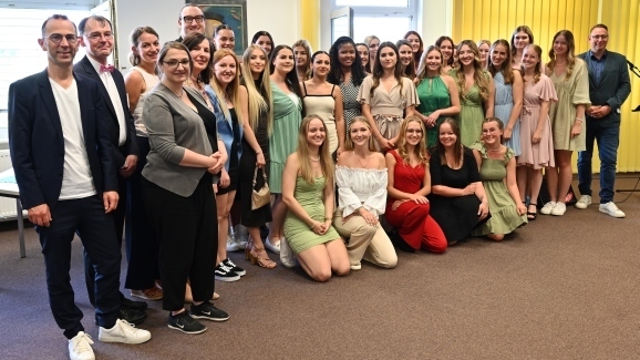 Ravensburg –Gesundheitsakademie verabschiedet ersten Jahrgang der generalistischen Pflegeausbildung. Die Oberschwabenklinik (OSK) gratuliert 13 Pflegefachfrauen und einem Pflegefachmann mit Vertiefungsschwerpunkt Akutpflege, acht Pflegefachfrauen mit Vertiefung Pädiatrie und sieben Absolventinnen des Pflege-Bachelorstudiengangs an der Hochschule Ravensburg-Weingarten zu ihren bestandenen Examen.