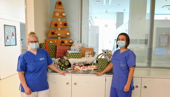 Ravensburg (frak) – Das Team der Kinderintensivstation am St. Elisabethen-Klinikum war dieses Jahr wieder fleißig auf Sponsorensuche für den alljährlichen Adventskalender für unsere kleinsten Patienten. Jeden Tag vom ersten bis zum 24ten Dezember darf ein Kind der Kinderintensivstation ein Päckchen öffnen. Organisiert wird der Adventskalender von den Mitarbeitern der Kinderintensiv Larissa Scheck, Katja Kolbaske, Katrin Knöchel und Elke Rothenhäusler.
