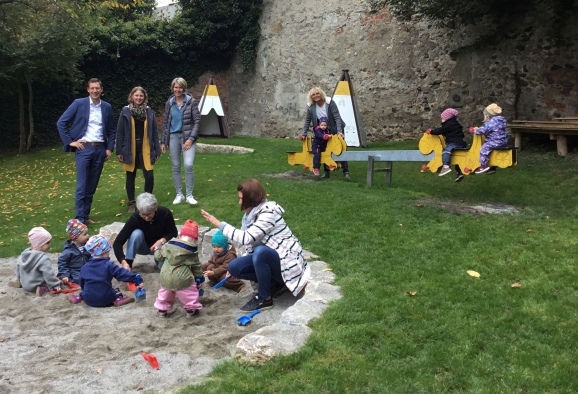 Weingarten - Toben und buddeln im vielleicht hübschesten Winkel der Stadt: Oberbürgermeister Clemens Moll und die Kinder der Villa Kunterbunt haben den rundum erneuerten Spielplatz am Mostgässle eingeweiht.
