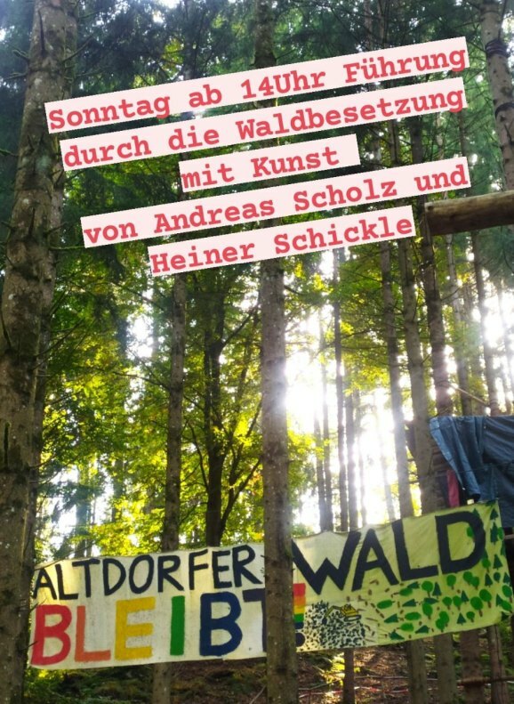 Region - Aktivisten laden, wie jeden Sonntag um 14Uhr, zum Waldspaziergang durch den besetzten Altdorfer Wald (Alti) ein.