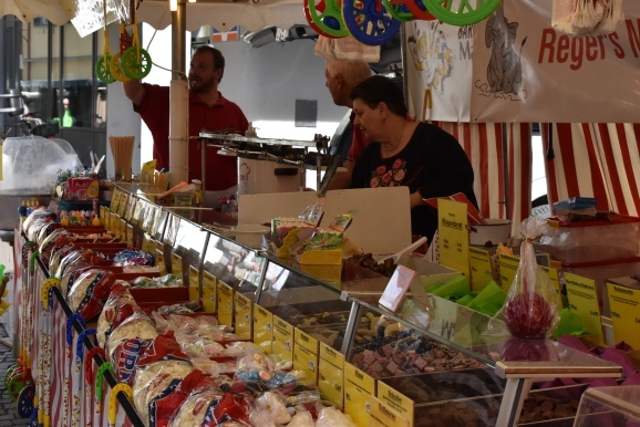 Und natürlich gab es auch das, was nur auf solchen Märkten zu finden ist: Zuckerwatte, frisch gebrannte Mandeln und Magenbrot! Nicht nur Kinder kamen bei den süßen Ständen auf ihre Kosten, auch Erwachsene holten sich so manche Tüte Magenbrot, Rumkugeln oder Popcorn. Herrliches Herbstwetter ließ die Marktbesucher lange verweilen, sie stöberten, trafen Bekannte, hielten so manches Schwätzle nutzen den ganztägigen Wochenmarkt und erfreuten sich an einem wiederum gelungenen Gallusmarkt in Leutkirch.