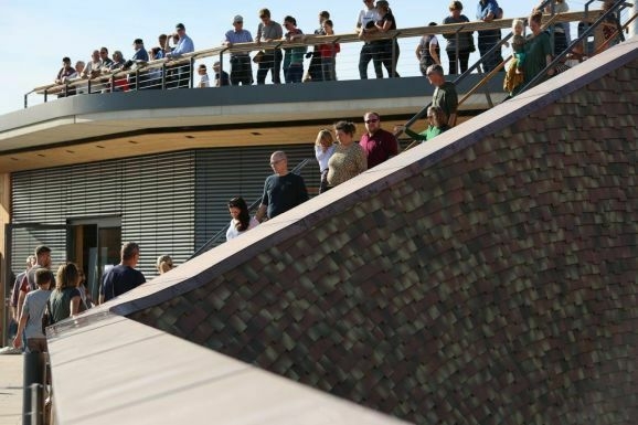 Das Besucherzentrum ist von Bau-Firmen aus der Gegend erstellt. Die Dämmstoffe enthalten Naturmaterialien wie zum Beispiel Hanf. Darauf legte Projektleiterin Seraphine Wilhelm großen Wert. Durch die natürlich glasierten Tonziegel an der Fassade mit dem tiefgezogenen