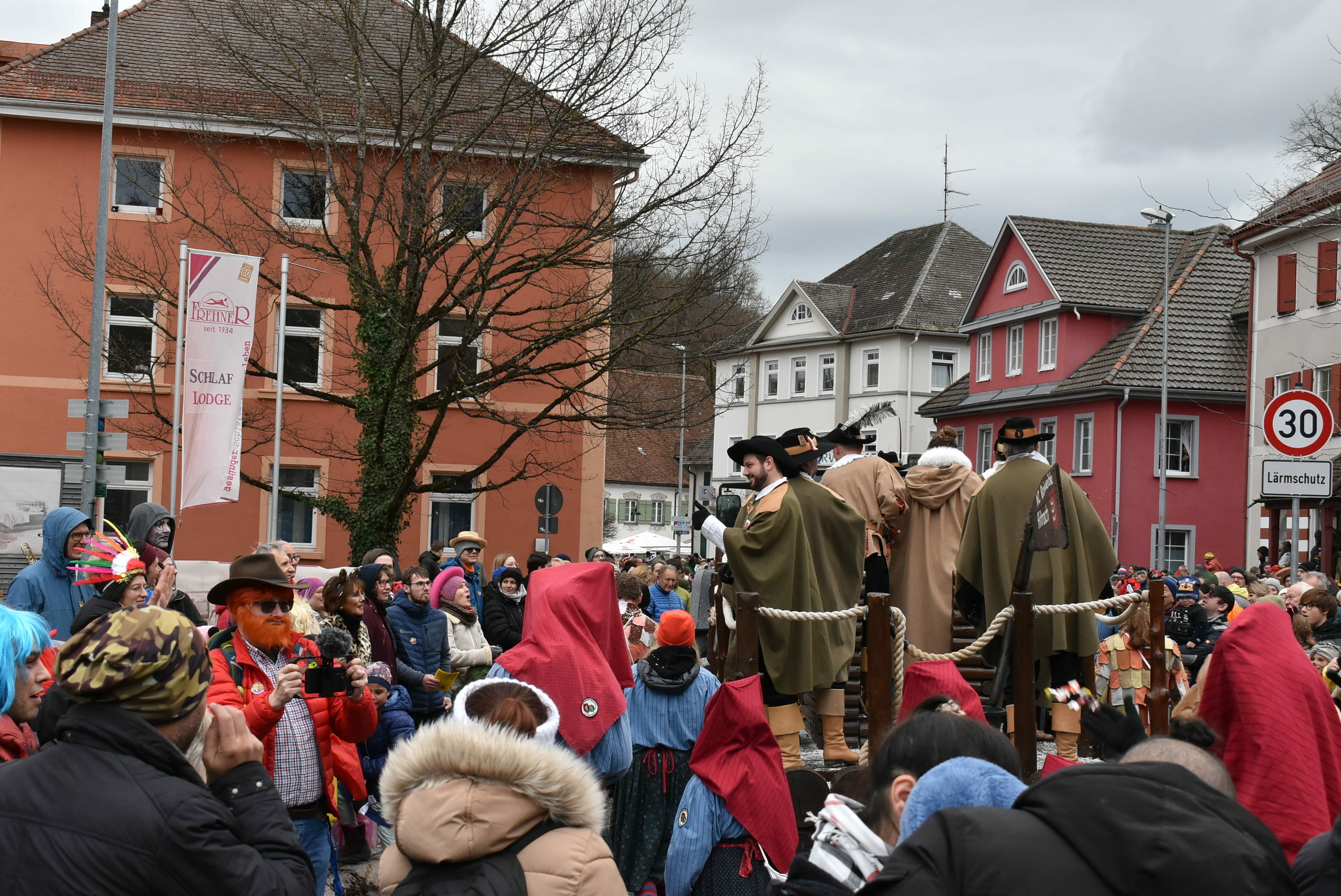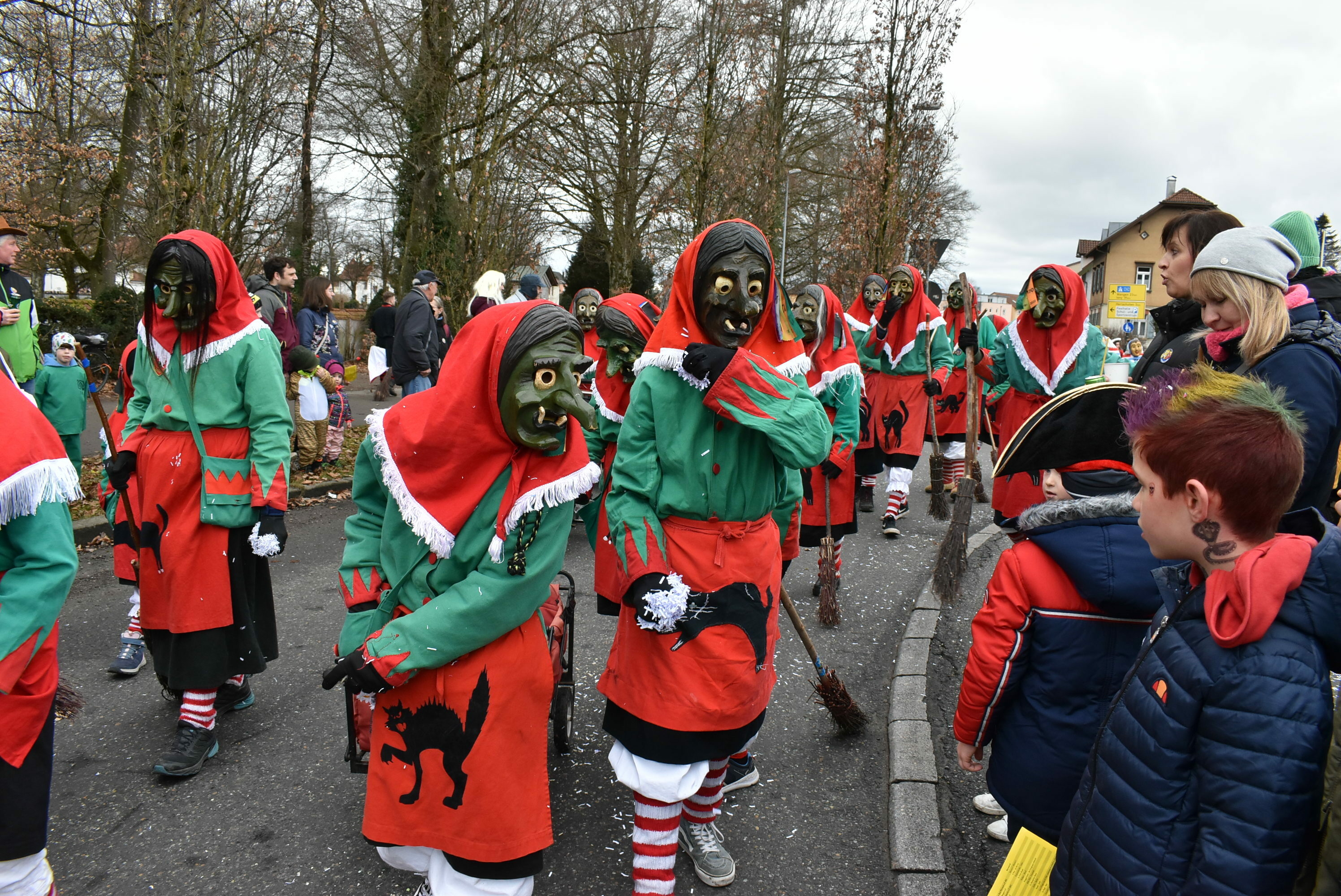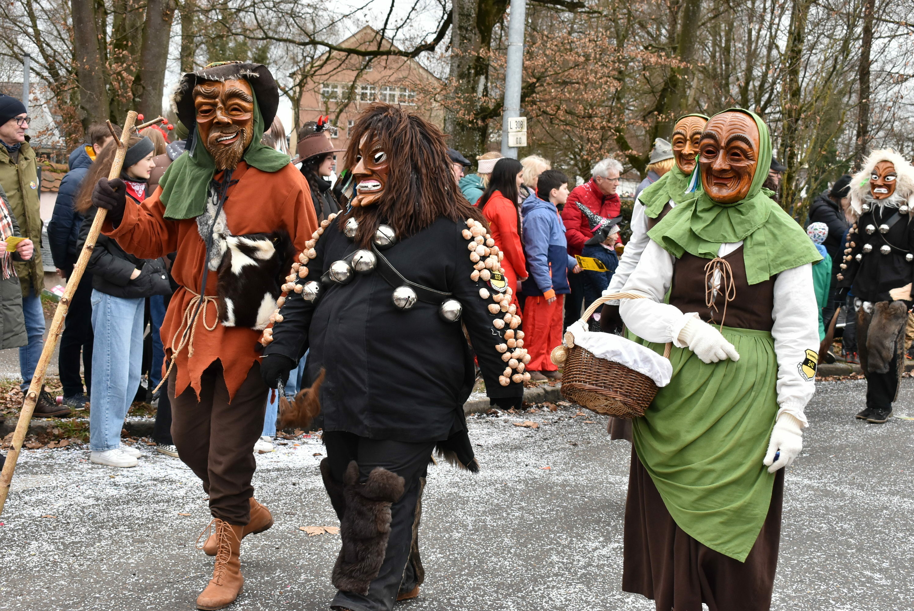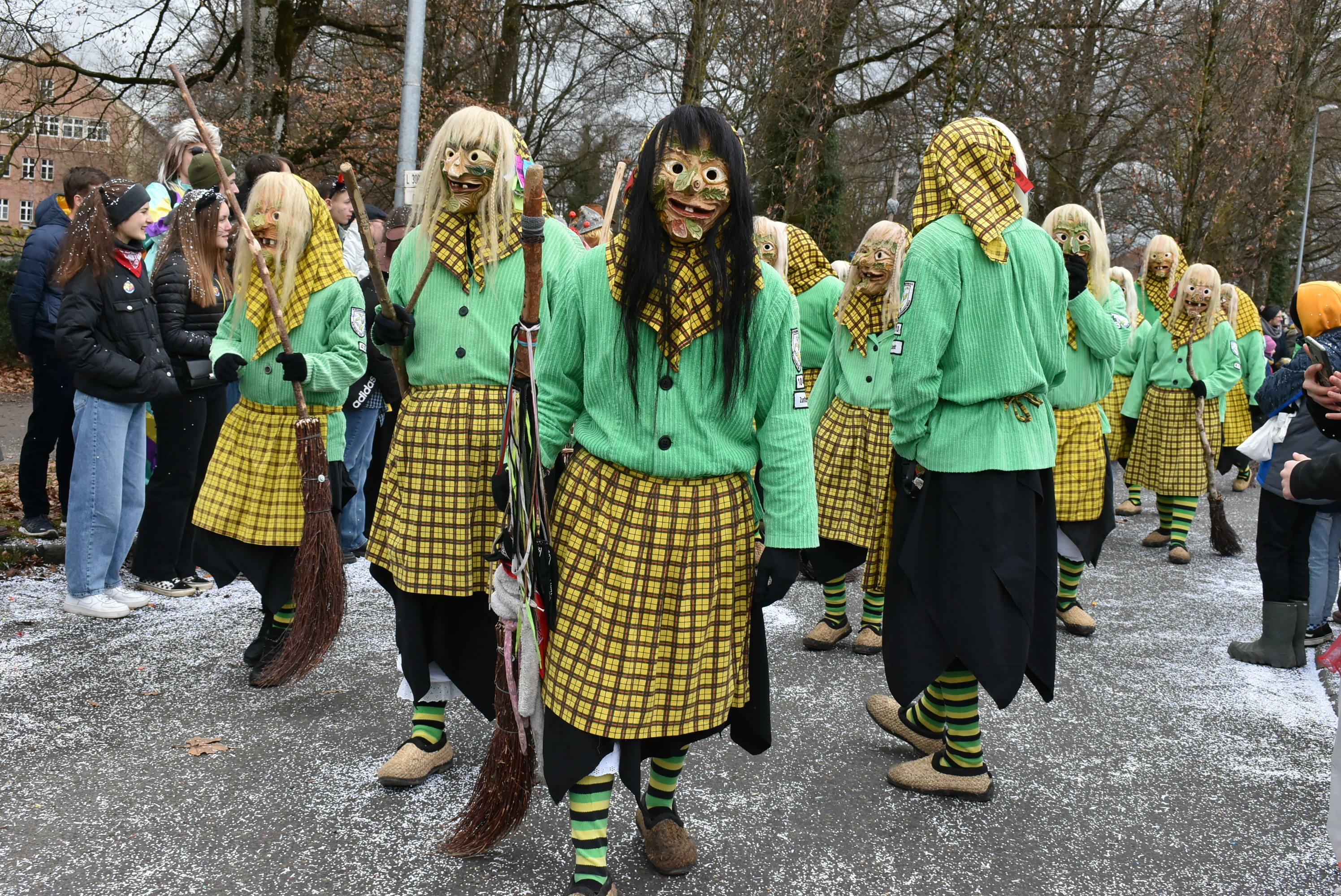 Schön war es, dass auch wieder die Bayern dabei waren: Kempten mit drei Gruppen, die Memminger Stadtbachhexen, Gruppen aus Buxheim und auch aus Buchenberg war eine Hexengruppe mit im Narrenwurm, der an mehreren Stellen von närrischen Fachleuten kommentiert wurde.