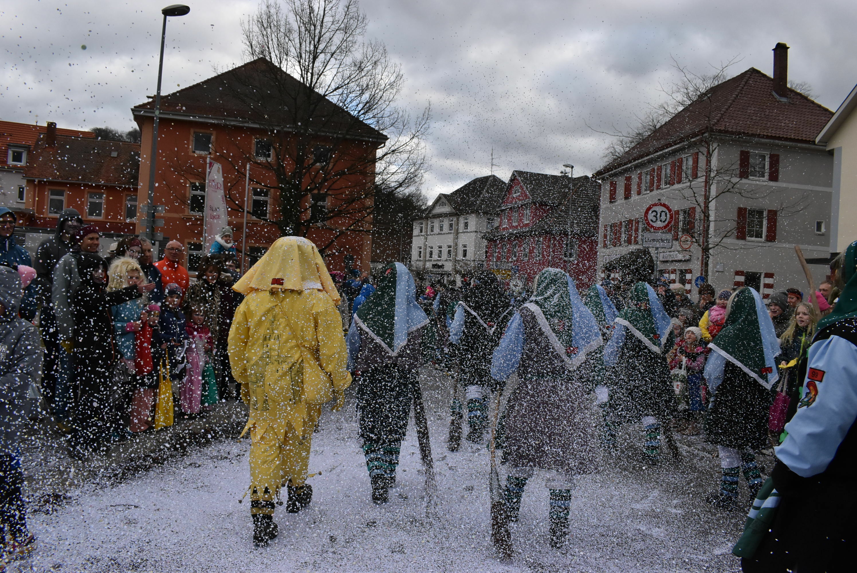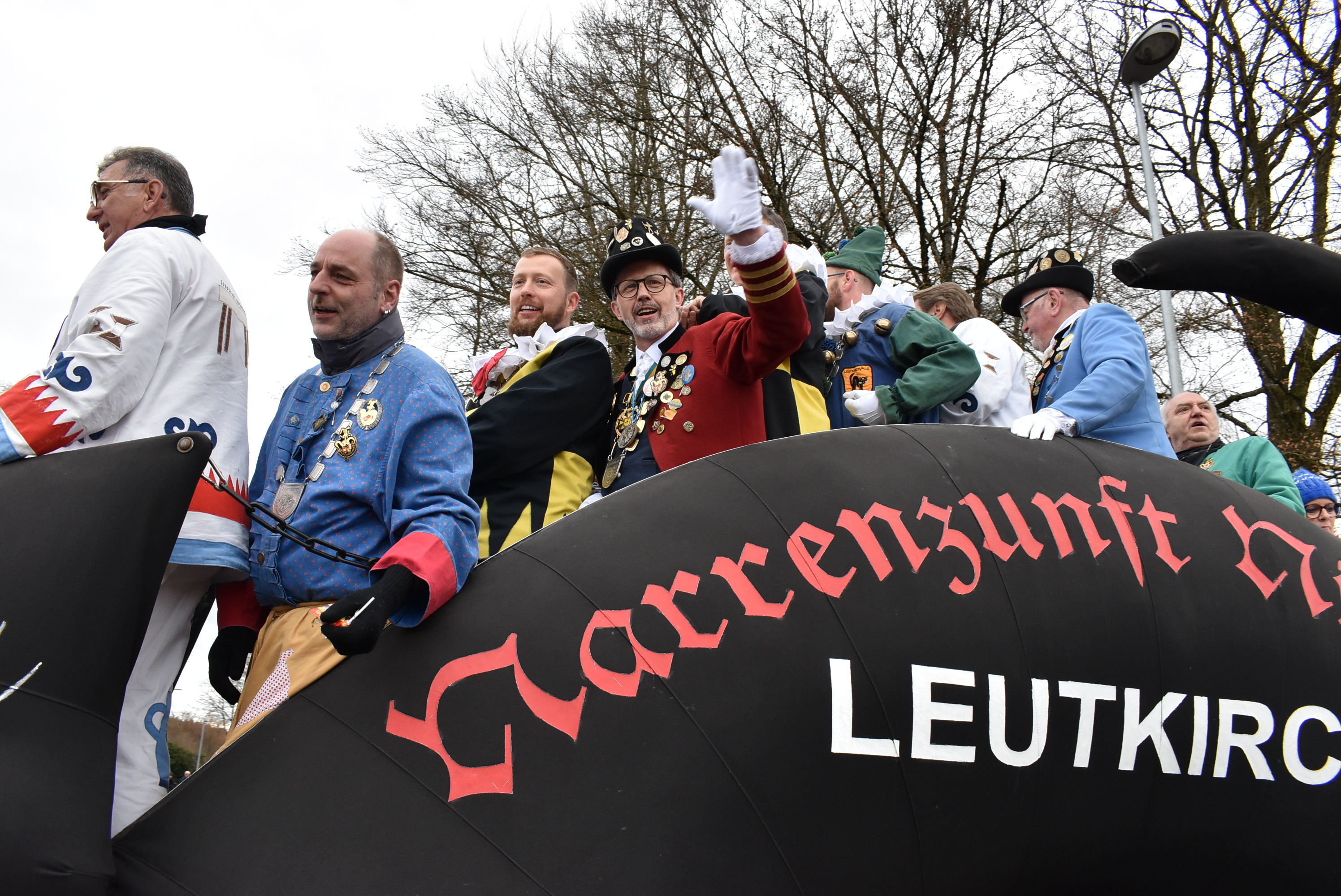 Narrenzünfte und Musikgruppen wechselten sich ab, auch Zünfte aus der näheren Umgebung wie die Blätterhexen Wuchzenhofen, die Feuerhexen aus Allmishofen, die Gebrazhofer mit ihren Dickköpf‘ und den Blumennarren und auch die Zeiler Keiler sowie die Hergesweiber aus Hofs dürfen bei keinem Leutkircher Narrensprung fehlen.