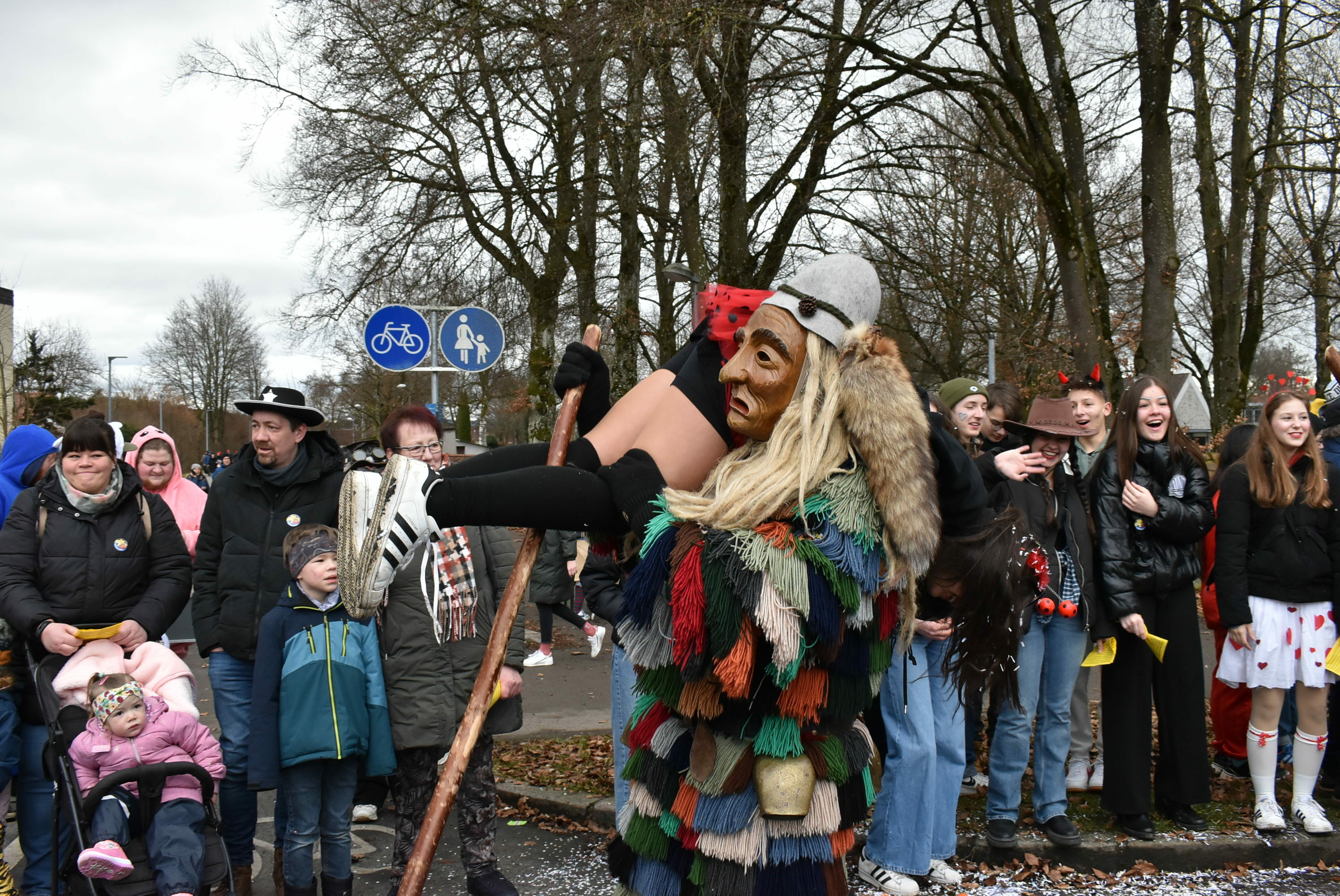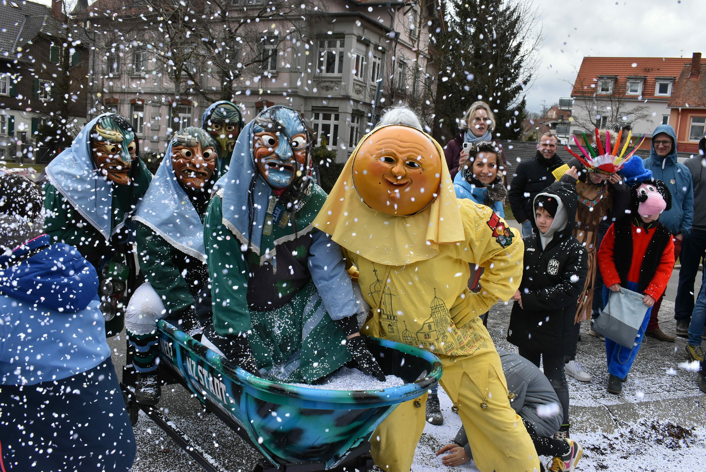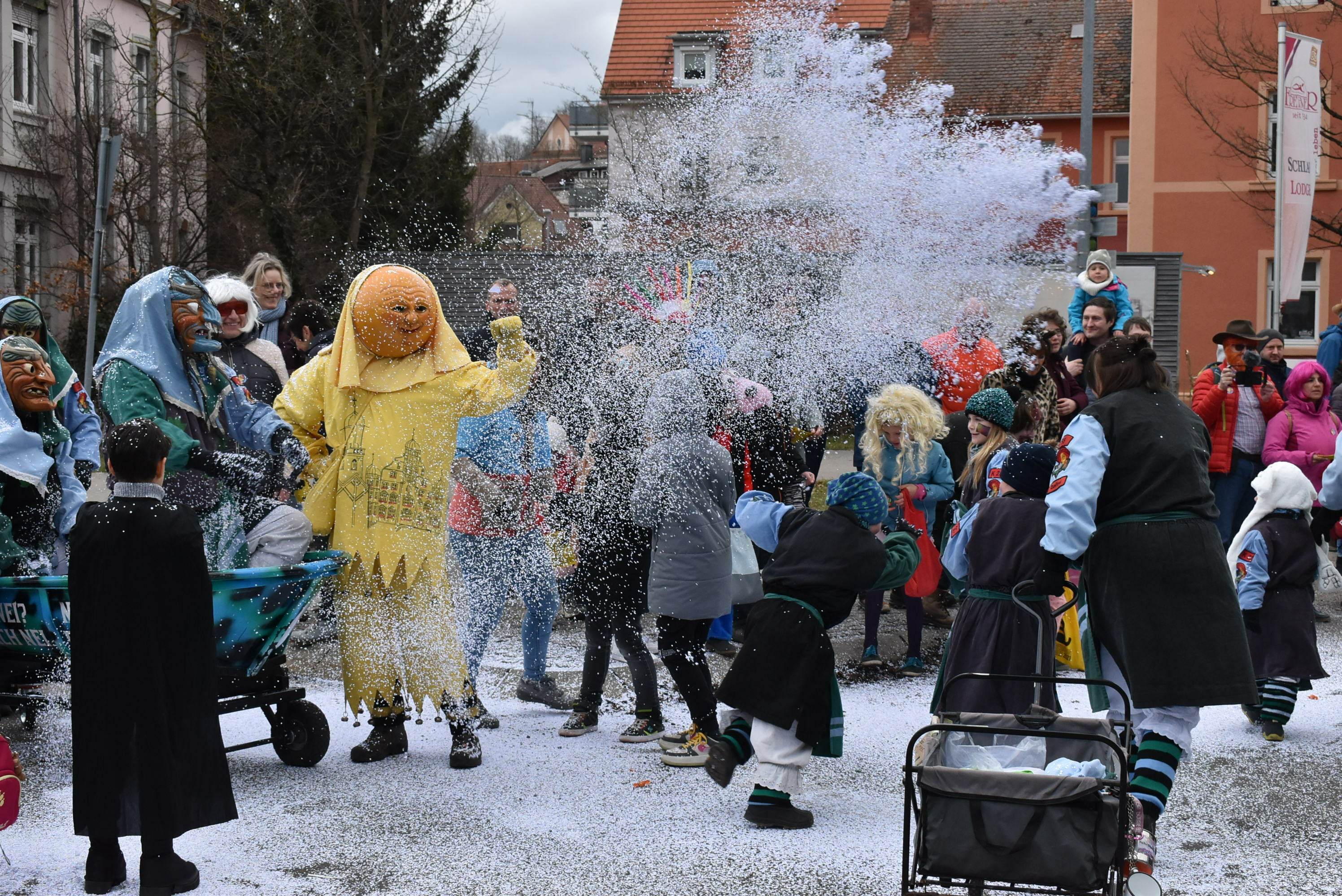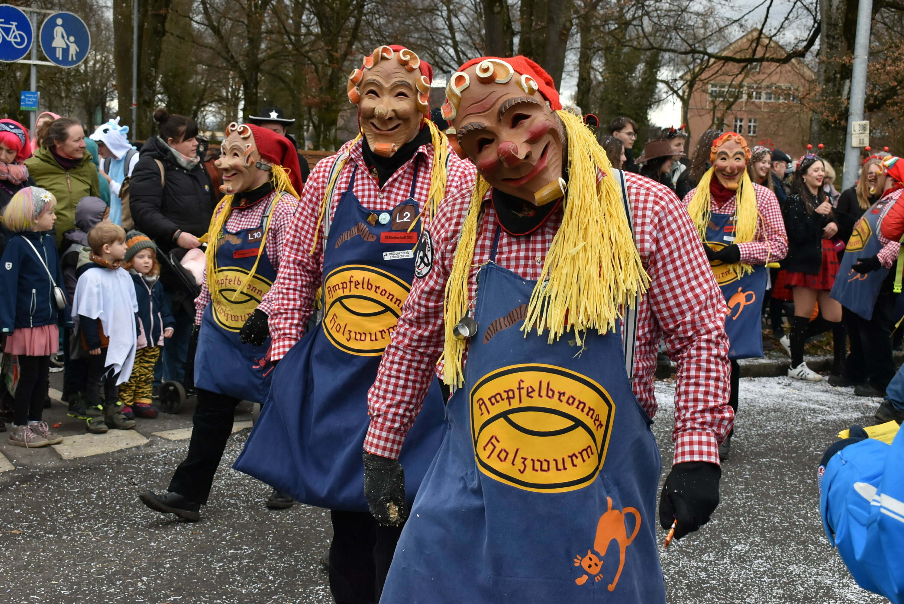 Schon von Beginn an säumten unzählige Menschen in bester Stimmung, darunter viele Familien, den Straßenrand. Viele waren maskiert, die Kinder hatten Stofftaschen dabei für den zu erwarteten Bonbon- und Lutscher-Regen, wenn sie denn auch den jeweiligen Narrenruf richtig gerufen hatten.