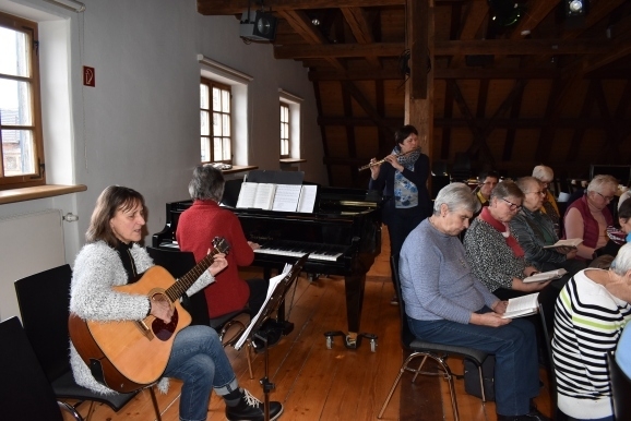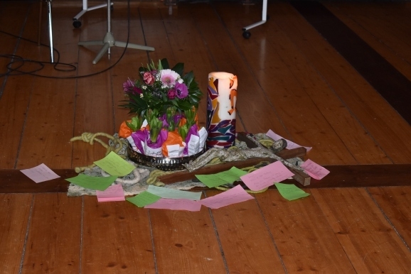 Der Reigen Zukunft – Hoffnung schloss die biblische Geschichte im Alten Testament von Noomi, die Mann und beide Söhne verloren hatte und mit ihrer Schwiegertochter Ruth eine neue / alte Heimat findet. Für den musikalischen Rahmen sorgten Monika Heinz mit der Klarinette, Mechthild Schellhorn am Flügel und Karin Wäckerle mit der Gitarre.