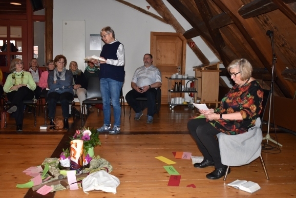 Unter Leitung der Vorstandschaft des Katholischen Frauenbunds Leutkirch in Kooperation mit der Bezirksvorsitzenden Thea Schupp-Alders aus Unterzeil wurden die Gäste gut mit Kaffee und Kuchen versorgt. Die guten Gespräche zeigten, dass viele Frauen sich kannten und sich gerne wieder zum alljährlichen Begegnungstag getroffen hatten. Aufruf zum abschließenden Wortgottesfeier unter Leitung von Adelheid Rauch-Mangold, die in bewährter Form Texte und Lieder ausgewählt hatte.