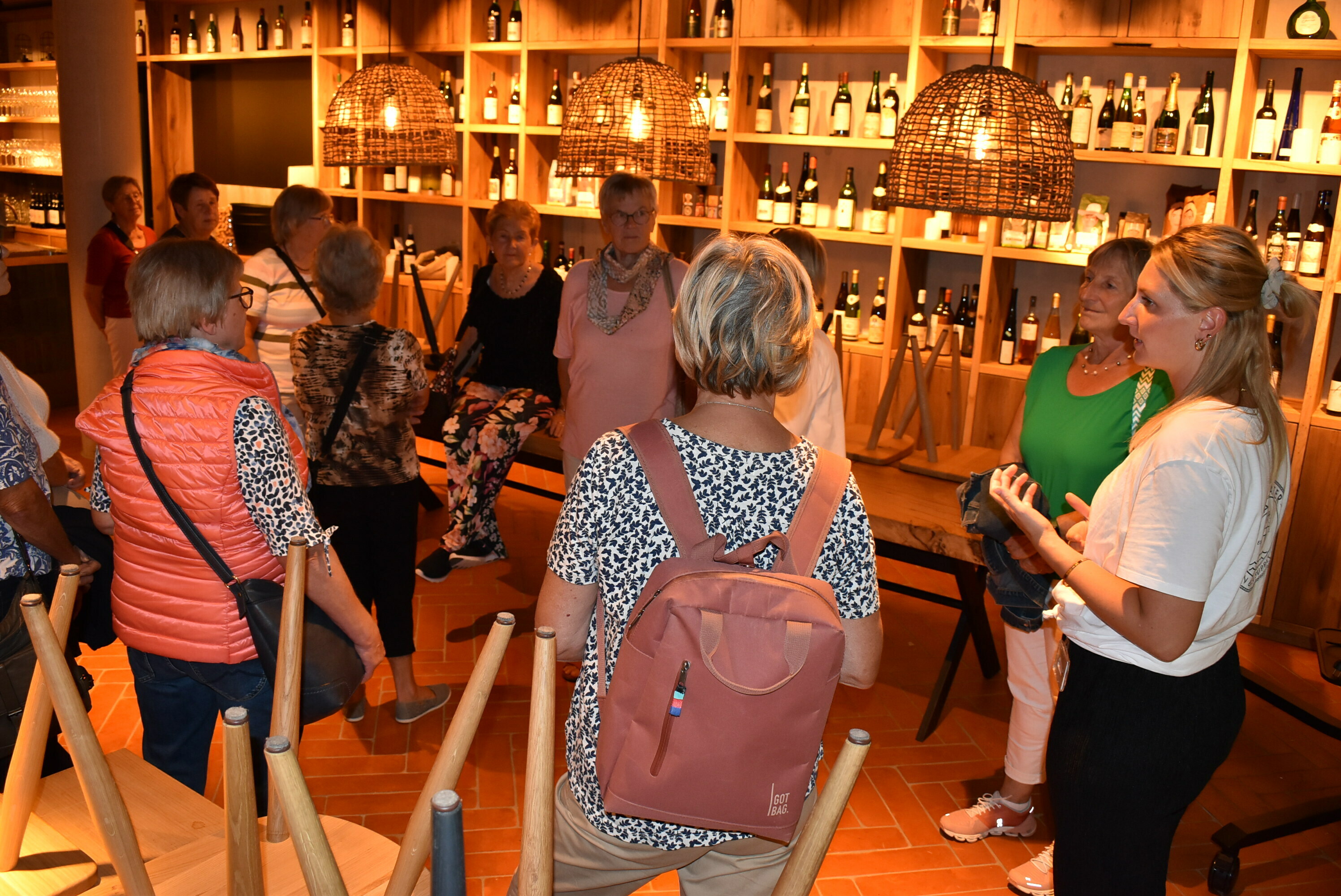 Nach der Ankunft wurde die Gruppe geteilt und es ging mit fachkundiger Führung durchs Gebäude von oben nach unten. Von den Anfängen in den 70er-Jahren, wie Firmengründer Josef Wilhelm mit Familie und Freunden den Gedanken „natürlich leben und essen“ umgesetzt hat, und sich immer weitere Märkte in verschiedenen Ländern für natürliche Lebensmittel erschlossen hat, bis hin zur heutigen weltweit agierenden Naturkostfirma, immer noch familiär geführt – das erfuhren die Frauen und durften auch einiges verkosten.